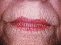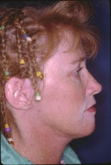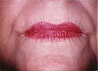 is manifested by fine wrinkles giving the appearance of "cracked dry river bed". Standard face lift surgery